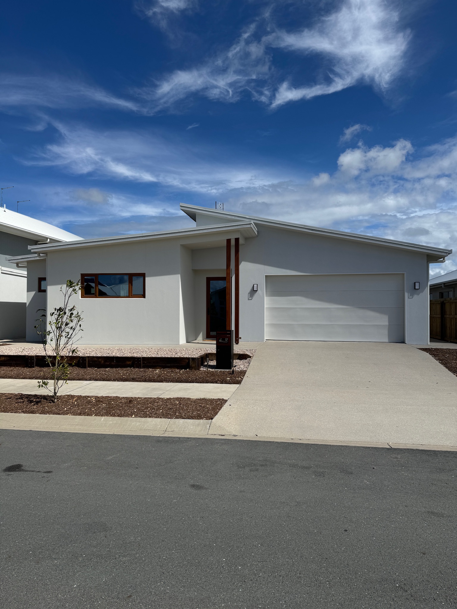 Architecturally, the home is expressed through clean lines, low-profile skillion roof forms and a restrained, durable material palette.