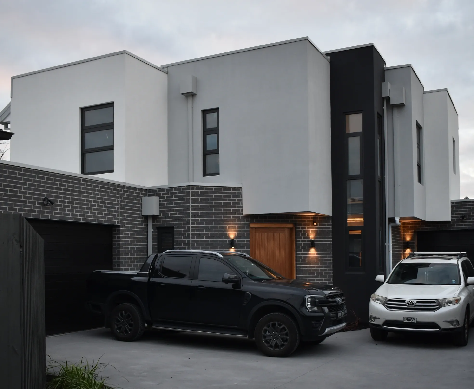 A contemporary double-storey, three-bedroom townhouse designed for comfortable, efficient living. The home features two bathrooms and a bright open-plan kitchen, dining and living zone with high ceilings. North orientation and tall double-glazed windows and doors maximise natural light while supporting year-round thermal comfort.