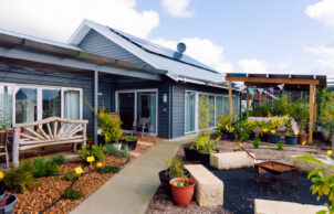 The house build was completed in January 2023, and we bought it in October 2023. It conforms to the Witchcliffe EcoVillage stringent standards for house structure and overall carbon footprint. Within our cluster of 23 houses, we will be independent for power (with solar power on the house, and battery for the cluster) and water (rainwater tank). We have a passive solar design, with wall and ceiling insulation, on a polished concrete floor as the heat sink. A central sewage system has been developed for the whole ecovillage. We have an extensive garden which provides a lot of food.