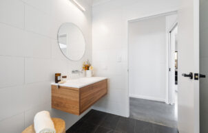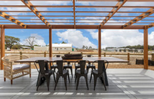 This is a stunning, custom-designed, sustainable home in the Witchcliffe Ecovillage that features three bedrooms, two bathrooms, and a study. Designed for energy efficiency and comfort, the open-plan kitchen, dining, and living area boasts vaulted ceilings and large windows, maximizing natural light. Built with sustainability in mind, it includes solar power, a rainwater tank, a ventilated roof and wall cavity, slab edge insulation, double-glazed windows and doors, and high-performance insulation with a Pro Clima weather membrane. Experience eco-friendly living in a beautifully crafted, energy-efficient home.
