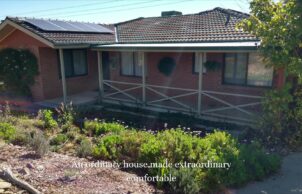 My energy bills for the past 12 months gas $0, electricity in credit about $47. More importantly is the quality of life. Shivering in a cold house in Canberra is no fun. Our very basic house has now been modified to be warm and comfortable and have great views over a deck, large garden and pond to distant views of a leafy suburb. We do not regret downsizing, far better smaller and cozy over big and cold. I would like to inspire other retirees to think about what they could achieve too.
