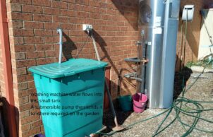 Other changes include installing a small tank and pump to recycle the washing machine water onto the garden and converting the swimming pool into a pond with plants and fish. This is surrounded by wicking beds providing a lovely cool retreat in summer. The pool was a big user of power and chemicals but over the past 3 years has not been used a lot due to Canberra being cold, windy, too hot or smokey. We don’t miss swimming a lot but we do enjoy the pond.