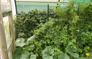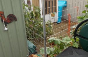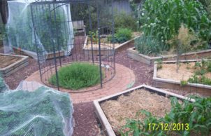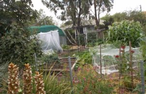 —- A productive, edible garden with about 18 raised beds, fruit trees and a very large bird-mesh covered berry house are mostly all drip watered from one line from the water tank. An aesthetic, edible garden with minimisation of previous lawn areas has been achieved.