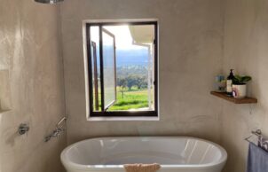 A lethal combination of an environmental education background and watching too much grand designs led to this house build. We loved the idea of using natural materials for both enviro and health reasons. We also wanted to have as little impact as possible in regards to the materials we chose. After talking with a few designers and knowing John Glassford who was only 1.5h away and was making straw panels, we knew this was going to be the most effective, create the most efficiency and be the more economical option. So straw walls are the main feature, alongside trusses built from reclaimed Melbourne wharf timber and my favourite feature – a worm farm sewerage system which helps our veggies grow. We think the efficiency is great and generally only need the split system (only one in the home) on on days above 35degrees.