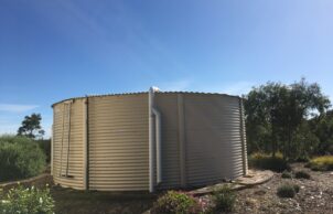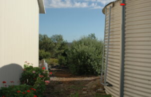 We rely on water tanks for all water, we have no living lawn and have a septic system in place. Main water tank has a Storz fitting for bushfire authority access.