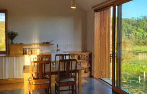 The exterior is recycled gal, the interior is warm and bright and smells like timber and beeswax.