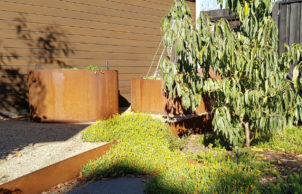 There are no gas bills to pay and we export more electricity from our solar panels than we import from the grid. The front garden engages with our streetscape, with a billabong and native landscaping designed to attract wildlife, while the back is our productive garden of citrus trees and vegetables.