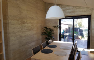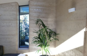 Constant, warm fresh air is provided by a mechanical ventilation system. We’ve minimised the use of materials with high embodied energy, instead using predominantly wood and rammed earth.