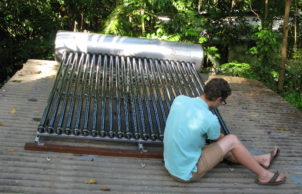 8.5 Ha re-forested property at Cape Tribulation (grassland in 1988!) – now a small, independent biological and conservation research station.  5.7 KW solar array, 2 dehumidified laboratories, workshop, 5 bunkroom cabins (all made with reclaimed timber), communal area (kitchen, library, office and dining area – ( in  reclaimed 1960’s Main Road’s ‘dongas’), beginning permaculture garden, Solar pumped bore water supply, composting toilets, large 3 bin waste composter for garden, Evacuated tube solar HWS. We run 3 high efficiency refrigerators/freezers as well as two (Station designed an built), high efficiency dehumidifiers. Involved in battery technology research as well.  Not what you’d expect in the ‘bush’.