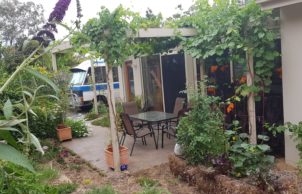 Energy costs of this home are low with grid connected PV system and solar hot water system, energy efficient appliances and passive solar design principles. Highly insulated walls, ceiling and floor keep this home warm in winter and cool in summer. Rain water is collected and used on the water wise garden. Recycled concrete was used in “urbanite” retaining walls for the natural swimming pond which was finished this year. The “green eave” has flourished and worked perfectly this summer to reduce the internal temperature.