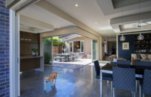 Many sites have limited solar access and are often written-off as unsuitable for a low-energy high-comfort house. This should not be the case. This site in Neutral Bay, like many urban sites, had significant shading to the north, but we took advantage of one ‘window’ of north sun at ground level and then ‘borrowed’ the rest from solar collectors on the roof.
