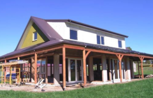 Solar passive design straw-bale in-fill post and beam construction with all round veranda on a concrete slab. Straw-bale wall treated with lime render with lime-wash inside and out. 3 Bedroom, 1 Bathroom loft home. Second story is double stud insulated wall with 80mm rendered foam wall cladding. Upvc double glazed windows through out the house. 3.2Kw solar grid connect system, evacuated tube solar hot water system. 12v lighting system with LED through out the house with a rainwater plumbed to laundry and toilet.
