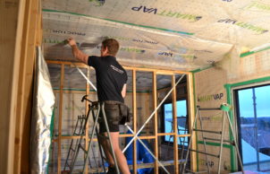 The house is designed to follow the German Passive Haus principles with the primary focus on a high performance external building envelope. Construction methods incorporate high insulation values, reduced thermal bridging, air-tightness and PVC high performance windows. Building systems use two insulation layers targeting Rt5.0 with all internal walls insulated for acoustic comfort. The external walls and roof include an external vapour permeable weather barrier wrap and internal vapour barrier air-tight wrap to providing a high level of air-tightness, targeting 0.6ACH@50pc. To maintain air quality a mechanical ventilation system supplies fresh air to all living areas and extracts stale air from bathrooms using the exhausted warm air to preheat the incoming cold air in winter (HRV – Heat Recovery Ventilation). The wall and roof building systems include a separate zone for services so thermal and air-tight performance is not compromised. The Passive Haus approach guarantees exception comfort, 90% reduction in energy use, acoustically quiet, condensation free, and an healthy indoor environment, proven over 30 years of German development. This house is currently presented at construction so you can view and the inner workings of the Passive Haus approach.