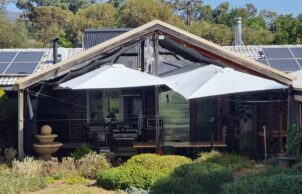 We also have a 7kW solar system and solar hot water with instantaneous gas back-up.A micro evaporative cooler is used for 8-12 nights a year and have a gas space heater. Solar heating and warm outside pergolas in winter and shading of pergolas and all walls in summer. Cross ventilation casement windows. We have 76,000 litres in rainwater tanks which are connected to the garden, toilets, dishwasher and laundry. Outside summer kitchen. In the garden are 30 fruit trees, 130 grape vines and a system of wicking beds for vegetables and herbs. Our permaculture garden also includes chooks, bird nesting boxes and corridors of shrubs and ground cover to encourage lizards, butterflies, bees and birds.