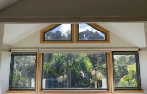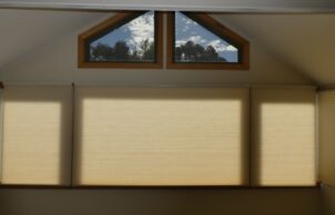 Decks with eaves on all sides, cathedral ceilings and reflective roof paint are supplemented with clerestory window films, double-glazed skylight, reflective and honeycomb blinds, awnings and curtains. These are managed according to outside temperature and sun orientation. Ceiling, roof and underfloor insulation along with enhanced weather sealing complements these passive measures.
