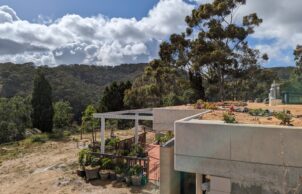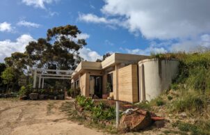 Completed in January 2023 in the hilly southeastern suburbs of Adelaide, Stefan and Emrys’ underground house uses earth as a defence against potential bushfire attack. After inheriting the land from family, they were keen to build there but were worried about the bushfire risk and couldn’t necessarily rely on fire services being able to defend the site easily, as the driveway was long, steep, and narrow, and so they chose to design the house accordingly. They also wanted a home that was cheap to run and easy to maintain, and that is when they enlisted the help of ShelterSpace, who specialise in earth-sheltered homes.