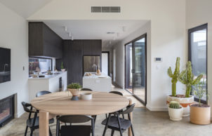 Cairns Avenue is an all-electric, 7.5 star sustainable home designed specifically to fit on a narrow (9.9m) wide allotment in a typical suburb. The home is passively designed and utilises a generous setback to the north coupled with extensive uPVC double glazed windows and external shade structures to create year round comfort.