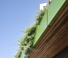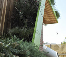 The eave on the outside of the house is planted with a mixture of decorative, and insect-attracting native and hardy exotic species, and provides summer shading where it is needed. Roof runoff waters the planter, which is filtered then drains into bladder tanks and onto the garden.