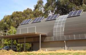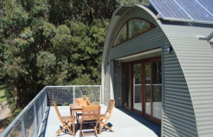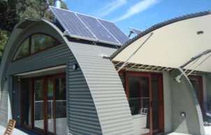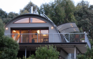 Steel Colourbond CGI (corrugated iron) roof and wall cladding has – durability, low thermal mass, low maintenance, fire and storm resistance and economics. The main superstructure has been designed using lightweight steel framing. Although steel has relatively high embodied energy compared to timber, unlike timber it’s infinitely recyclable.