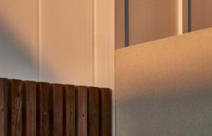 Materials specified throughout include recycled glass products, Australian made soft furnishings and fabrics and living tumbled brass finishes that will naturally patina over time and age beautifully, eliminating the need for replacement due to salt exposure. Cleverly integrated storage solutions make it possible for a family to comfortably inhabit this space. A minimalist approach was taken aesthetically, balanced with details reminiscent of the coastal vernacular of the area seeing a palette of crisp whites, and earthy grey hues and recylced timber, creating a calm and sophisticated coastal retreat.