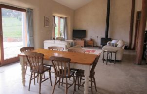 Energy efficient utilities and lighting and a wood combustion stove are fitted.
