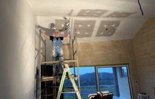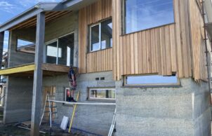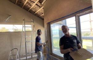 External walls are a 300mm thick lime rendered hempcrete which ticked the boxes for us in terms of its characteristics, sustainability and being carbon neutral. Hempcrete has been proven to absorb more carbon from the atmosphere than it emits during its production, making it a remarkably eco-friendly building material. It is also a great insulating material, a source of thermal mass, a non-toxic material and has walls that breathe, reducing moisture and condensation issues.