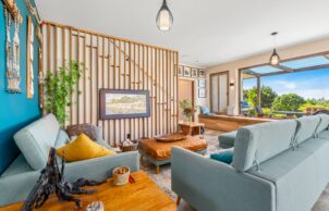 The house is all electric, has 6.6KW of solar, reverse cycle air conditioning and ceiling fans, a Sanden heat pump for hot water and a charger for an EV. It has an 8.3 Nathers rating.
