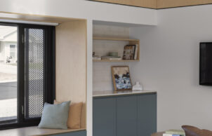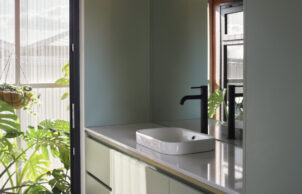 UPVC double glazing, reverse-veneer construction and a burnished slab help to keep the home constantly warm in winter and strategically placed openings capture the evaporatively cooled breezes from the pond to help it stay comfortable in summer. Fully electric, the photovoltaic array generates more energy than the house uses from the grid with a solar diverter and smart programme maximising green power for water heating.