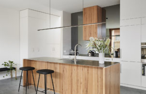The Davison Collaborative is a case study on sustainable density, transforming one suburban block into three, 150sqm fossil fuel free, 100% electric homes. SIPs, solar panels, sonnen battery technology, electric heat pumps for hot water and hydronic heating and an ERV system contribute achieving 8+ out of 10 star NatHERS rating.