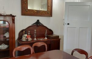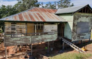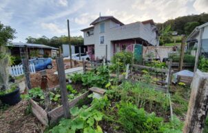Dorothy is a Queenslander built on site from local wood on a farm south-west of Ipswich. She was cut in three and brought to Narara Ecovillage on the Central Coast of NSW by Mackay house relocators on three trucks where she needed to be retrofitted to the Ecovillage’s high sustainability standards set out by our Building Review Panel. Key aspects were: wall and ceiling insulation; solar powered roof vent to remove ceiling heat in summer; the use of Magnitite on the old windows to achieve double glazing; removal of covers on highlights above the doors to re-establish ventilation; Repair of wooden shutters and doors on western veranda to protect from the afternoon sun; filling in the downstairs area with a concrete slab and internal double brick walls for thermal mass; overhang of 2nd storey to protect downstairs from summer sun but allow winter sun; solar panels connected to the village battery and microgrid; 17kl of rain water tanks which provide water for the whole house; purple pipe water for gardens; terracing to maximise use of a small block and slow water runoff; permeable paving to minimise water runoff;