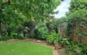 Tall northern windows for maximum light are shaded in summer by a generous roof overhang whilst allowing warm winter sun. Our large, new covered deck provides shading from the western sun, as does the retention of our backyard liquid amber which ensures shade in summer and plenty of sun in winter.