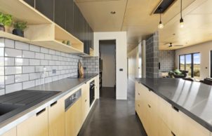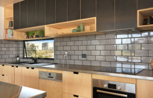 Housing the fridge and Sanden heat pump together allows heat generated from these appliances to dry clothes on inclement days. Air locks to control temperature, clever roof design for rainwater harvesting and easy access to solar panels all help create a home that virtually ‘pays its owners to live in it’.