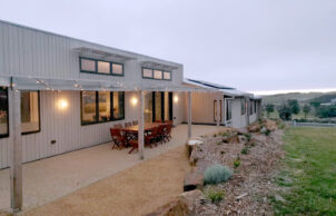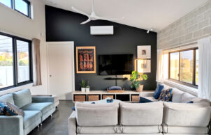 We planned our Eco Beach House during Melbourne’s lockdown 2020-2021. We started with one of the pre-approved designs from the Cape Ecovillage – the Mindil design (architect Adam Dettrick). We made some alterations to the floorplan in consultation with our builders, TS Constructions. The 4 bedroom/2 bathroom house was built January 2022 – June 2023.