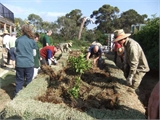 The garden at the Centre has been designed to minimise water use and includes a raingarden, no-dig garden beds and wicking beds, as well as a range of rainwater tanks, drip-fed irrigation, compost bins and a worm farm.