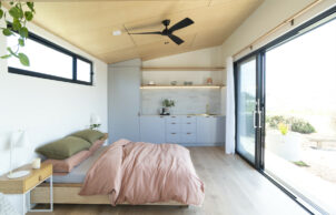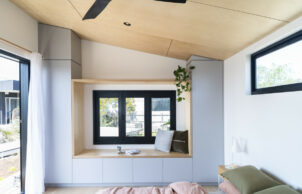 The newest addition to our Ecoliv Display Centre – The Eco Studio comprises of a kitchenette, bathroom and open plan zone. Perfect for a studio work space, eco luxury accommodation or a dependent persons unit the design lends itself to a multitude of functions. The window bench seat provides a space to relax and overlook the covered outdoor deck area and beyond into nature.