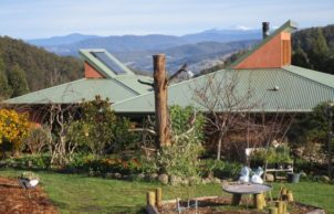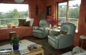 The house is passive solar design, made from strawbale, slate, cork, rock and lots of timber. Large double glazed windows capture the commanding views and the roof allows harvesting of rain water for all our needs. We have solar hot water and a 6kWh solar array supported by 2 x 10kWh lithium ion batteries.