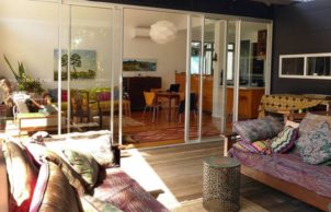 Originally designed and built in 2003 as a three-bedroom home, the house comprised two long pavilions with a swimming pool between them. The home was reimagined in 2012 to become two separate two-bedroom homes with NO swimming pool. This was achieved by lifting and reorientating one pavilion and renovating both sections to have north-facing living areas. Only one home is open for inspection on 15th September.