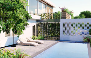 Floreat Haus is designed to meet the stringent Passive House standard to be highly energy efficient, comfortable and healthy. Located on an odd shaped sloping corner block, the home is designed to take advantage of spectacular elevated views with first floor living spaces and two elevated outdoor terraces.