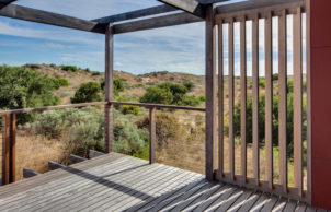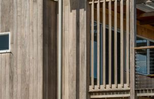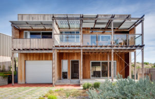 The climatic conditions are extremely variable featuring strong winds (bearing sand, salt and rain) from the south west quadrant, cooling on-shore breezes (SE to SW), hot northerlies and occasional breathless warm nights. Accordingly the house has been designed to mitigate the less pleasant conditions while maximising the benefits of the benign weather events. Timber decks to the north and south provide outdoor living opportunities in almost every kind of weather. Variable shading to the northern deck provides amenity in both winter and summer while the solar panels provide shade to the southern deck.