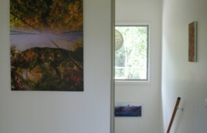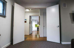 The home has been designed to have the living areas in the treetops and face north- north/west. The house has been zoned with doors into living areas both on ground floor and first floor. The doors help to control the unwanted movement of air throughout the house.