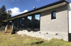 We have designed our home using passive solar design principles, using the concrete floor for thermal mass and louvre windows are located to promote cooling breezes. Our home is light and bright due to our second hand double glazed windows, reducing the need for artificial lighting during the day. Appliances and lighting are energy efficient and we are completely off grid using our 25kW of solar panels and 100kW hours of batteries.