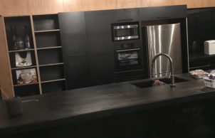 Rainwater from the roof is collected into a storage tank, then we pump up the hill to our larger storage tanks. The house functions using gravity feed. We recycle both waste water and all our food scraps through our worm farm septic tank. In an effort to reduce our water usage, we have installed Nebia showers that provide a significant water saving and sensor taps in the bathrooms so our kids can’t leave the water running.