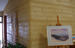 The REW soaks up any excess heat from solar gain thus stabilising the temperature. This, combined with the right proportion of windows, airtightness and a high level of insulation, holds the indoor temperature stable, dropping just 1 or 2 degrees overnight in winter without artificial heating. The main bedroom and ensuite don’t need supplementary heating as they adjoin the REW