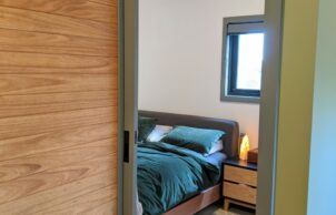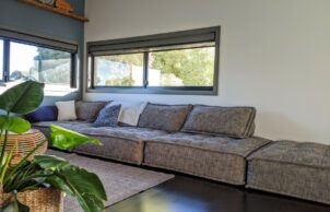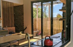 Happy Haus is an all-electric home that has been designed to be an adaptive, sustainable and multi-family home. It has lots of sustainable features including 6kW solar array, as well as passive heating and cooling through the use of thermal mass, cross-ventilation and deciduous planting around the house.