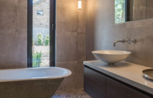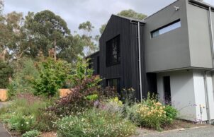 Thanks for your interest in my home. I’ve always been interested in environmental issues, gardening & sustainability & the opportunity to build my own sustainable dream house came about, when in 2016, I began the process of subdividing my one acre block in Heathmont into three lots: one with the original family home, plus two vacant lots. This of course took much longer than I anticipated & work finally began on my new home in May 2019; it was completed in May 2020. The block is 1076m2, north-facing & backs onto Dandenong Creek reserve. I wanted to take advantage of what I hoped would be lovely views along the reserve towards Mount Dandenong, so the house is an ‘upside down’ house, with the kitchen, living area & master bedroom on the second storey. My youngest daughter and I put the concept together & an architectural draftsman friend took all of our ideas & made them into a practical & (I think) beautiful home.