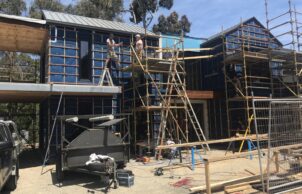The size of the block (we have a minimum 864m2 lot size in our area) & the fact that it was going to be two storey, meant that it would need to be a reasonable sized house. I tried to think about future proofing, as I’d like to live here as long as possible & also wanted the house to be flexible in terms of use. The new house was built along passive house principles & has an airtight double membrane with airtightness of 1.69 ACH & a Heat Recovery Ventilation system. I have 9.99kw of solar panels (I’m in the process of increasing that & installing a battery), a 21500L underground water tank for toilets, washing machine & garden, motorised external venetians & blinds, double-glazed uPVC windows, a wood pellet heater & the house is all electric. The garden has locally indigenous plantings, deciduous trees on the north side, chooks (the chook pen encompasses a small orchard), vegies, a variety of compost bins & a worm farm.