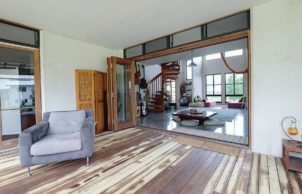 The initial parts of the house were completed in April 2015 and then we were finally able to move in to complete the kitchen, painting and installing the recycled timber floors ourselves.