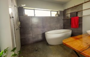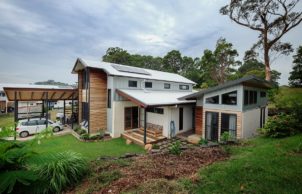 Some of the other sustainable features of the home built in this initial stage include the 24,000L water tank which is used as our main source of water for the entire house, large windows to the north which bring in the winter sun to be stored in the polished concrete floors, heating the home throughout the winter. We also installed 2 water saving toilets that have the hand wash basin above the cistern. The home is connected to high speed internet via the NBN allowing me to work efficiently from home to reduce the need to travel to and from a work place.