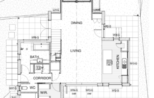 We immediately began designing our home with Jaye Irving from Barefoot Sustainable Design in early 2013. We were inspired by small homes with grand features that we had seen in Montana – 2 bedroom log cabins with a massive open plan ‘Grand Room’ with big windows to capture the winter sun. Much of the final floor plan came from this initial inspiration with the addition of a few outdoor living spaces, small private courtyard spaces and a studio to build at a later stage for when our family needed the space. We ended up with a solar passive plan that we quickly fell in love with and one that could be built in a few different stages over time to keep it affordable.