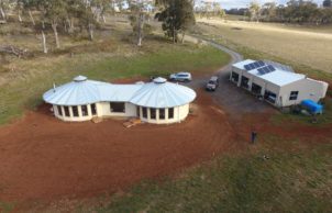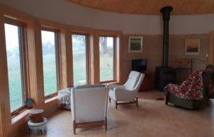 We have just completed building two x 8m round buildings co-joined into one home. We used a prefabricated roof and wall frame so that they could be erected on-site, saving energy and time.